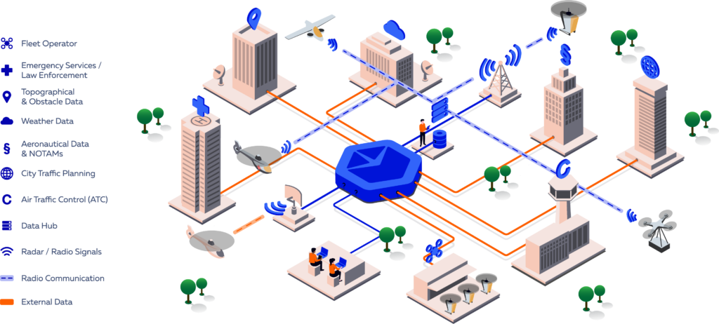 „Unsere Technologie verwaltet Routen, gewährleistet die allgemeine Sicherheit und bietet Flexibilität für die Mobilität von Passagieren und den Frachttransport.“ Wie bei einem intelligenten Superorganismus würden alle Arten von Drohnen und Landeplätzen zu einem gemeinsamen System verbunden – zertifiziert für die Sicherheit durch Luftfahrtbehörden weltweit, schwärmt Huber.
